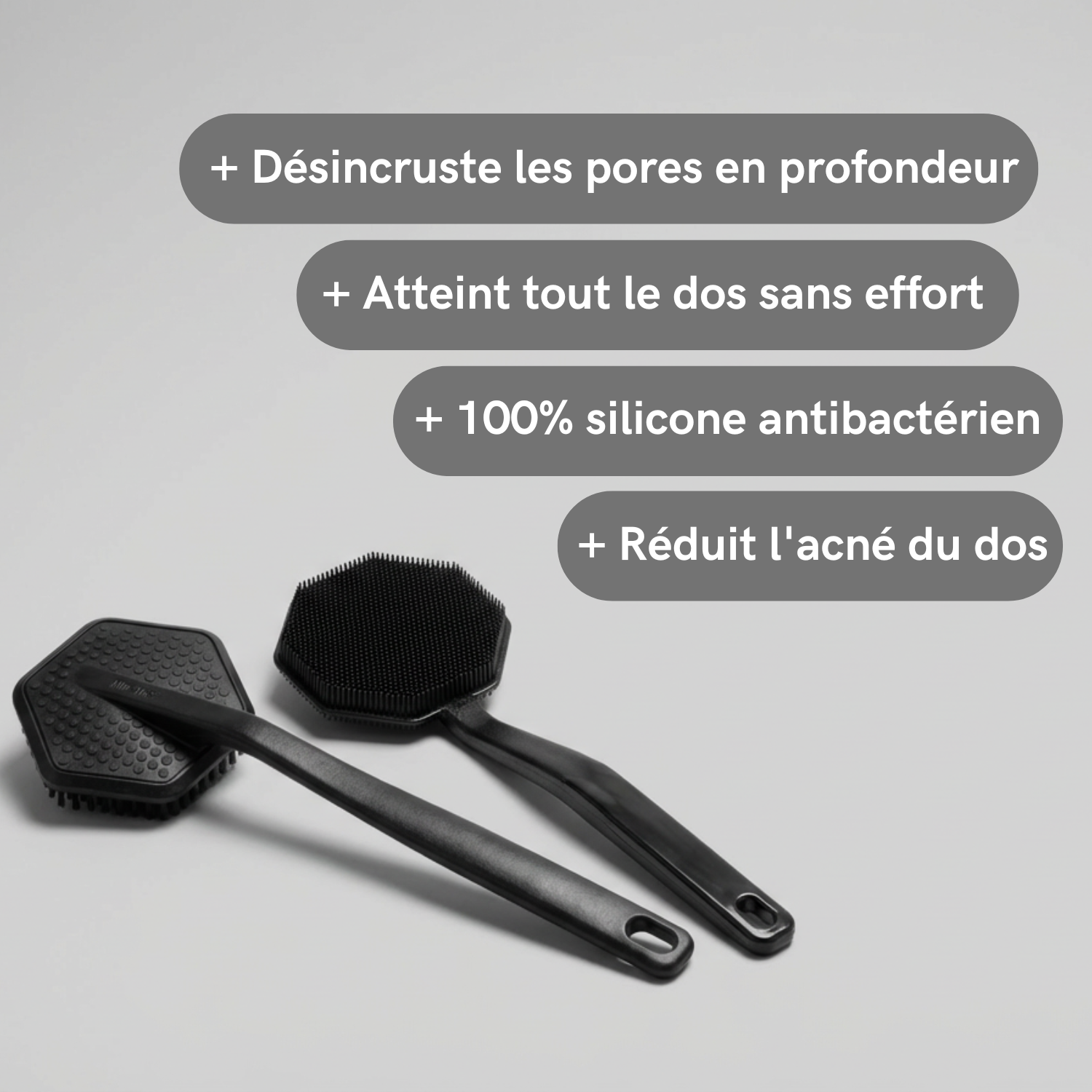 Élaborées en silicone premium 100 % antibactérien, nos brosses sont créées pour résister au temps tout en restant délicates pour l'épiderme. Elles ne développent aucune moisissure, ne se dégradent pas et ne retiennent aucun microbe, rendant votre peau plus soyeuse, plus lumineuse et plus pure.